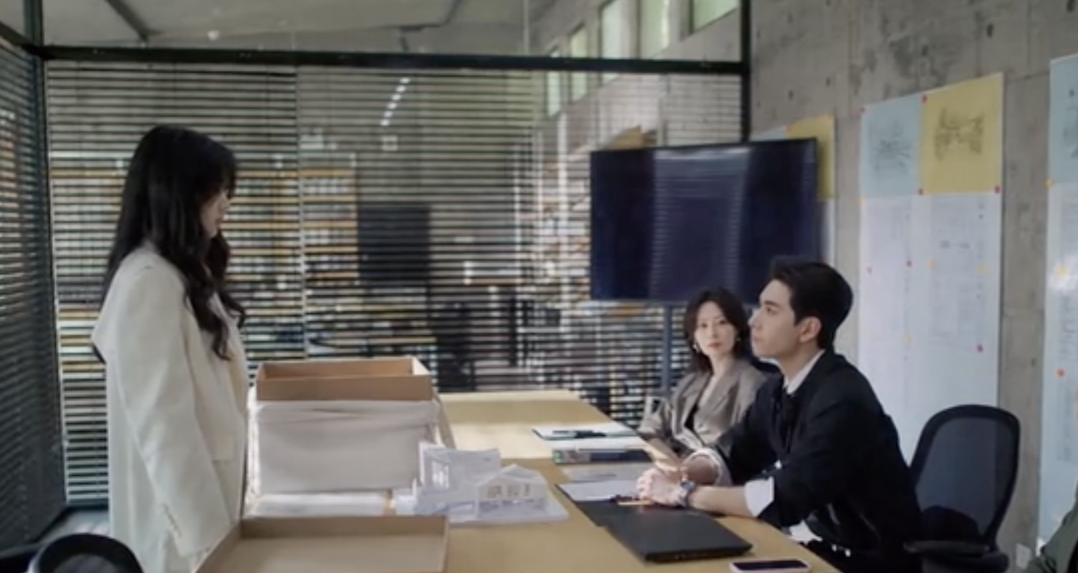 The next day, she steps into Dynamism and is immediately struck by its messy, high-energy creative atmosphere. Then comes the real shock: “Xiao Yu” is actually Xiao Zhiyu, the founder of the firm. During the interview with Xiao Zhiyu, HR director Dong Qi, and partner Zhou Yan, Hu Xiu is questioned about her three-year career gap. While that topic stings, she handles the technical questions on frame structures and sustainable design with confidence and clarity.