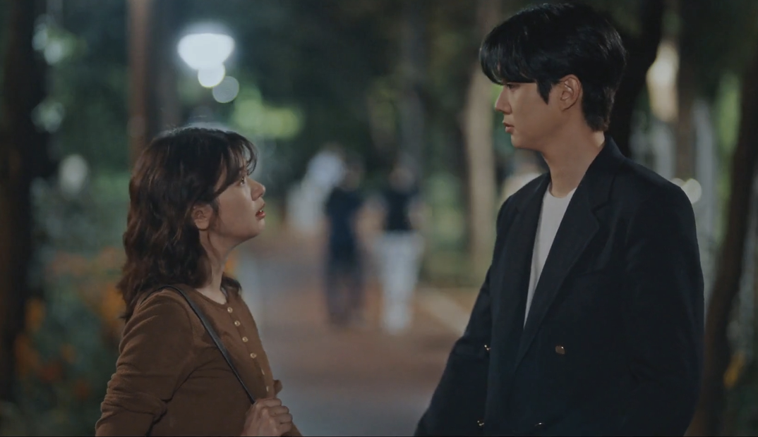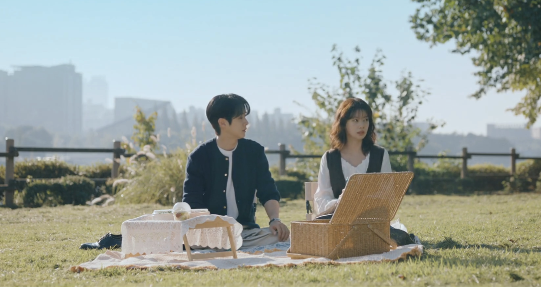 As for Me-ri, she spends her days dodging Woo-joo’s calls and swallowing heartbreak. Woo-joo, believing she might have been hurt by his grandmother, keeps trying to reach her with gentle, thoughtful care. When he finally plans a sweet picnic date under a work pretense, Me-ri uses the moment to officially break things off. Woo-joo’s response is as soft as ever, he apologizes if he pushed her too fast, unaware she’s lying to protect him.