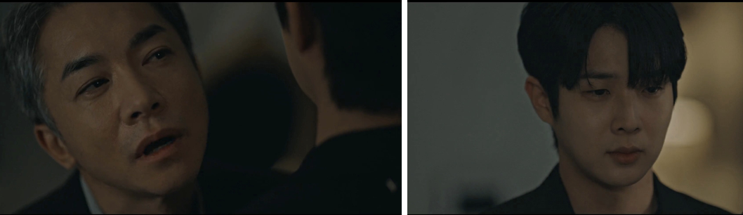 Episode 12 kicks off with Sang-hyun buried in some confidential documents, his mind buzzing with what Sung-woo’s dad told him. Sure enough, Sung-woo stops by, expecting Sang-hyun to take the fall for his shady dealings, but Sang-hyun has already made up his mind. He calmly agrees to shoulder the blame, even asking if they were ever really friends, to which Sung-woo confidently lies “yes.” Classic Sung-woo.