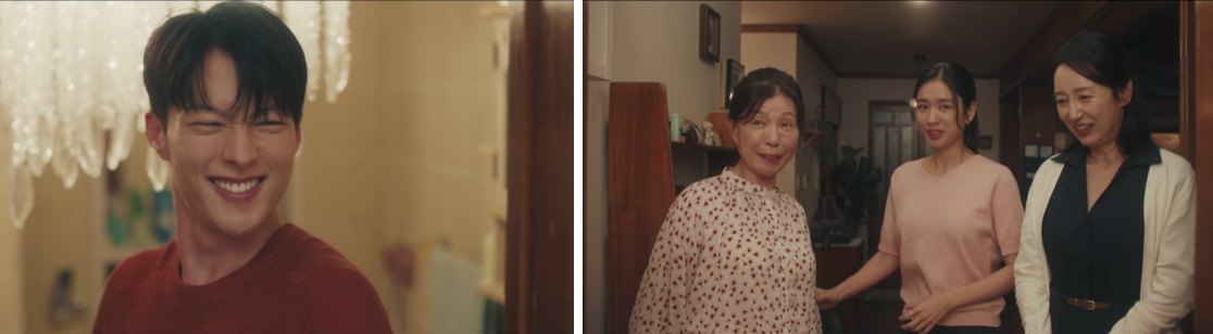 That night, Ji-hyuk treats everyone to dinner and sleeps on the sofa. In a quiet moment, In-ae opens up to Da-rim about Ji-hyuk’s lonely childhood and explains that he’s drawn to Da-rim’s warmth and kindness. Later, Da-rim asks her mother how to know if a man truly loves her. Myeong-soon’s answer is simple and heartfelt: watch what he does, not what he says.