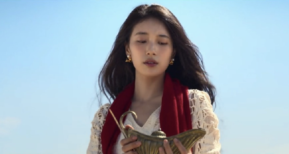 While angry and venting her frustrations, she smashes the lamp into the sand, only to discover she’s accidentally freed Iblis. He recognizes her instantly, but she has no idea who he is. She threatens him with a hairpin, calls him an idiot, and tries to move on with her life. Meanwhile, he follows her everywhere, looking equal parts determined and desperately motion-sick.