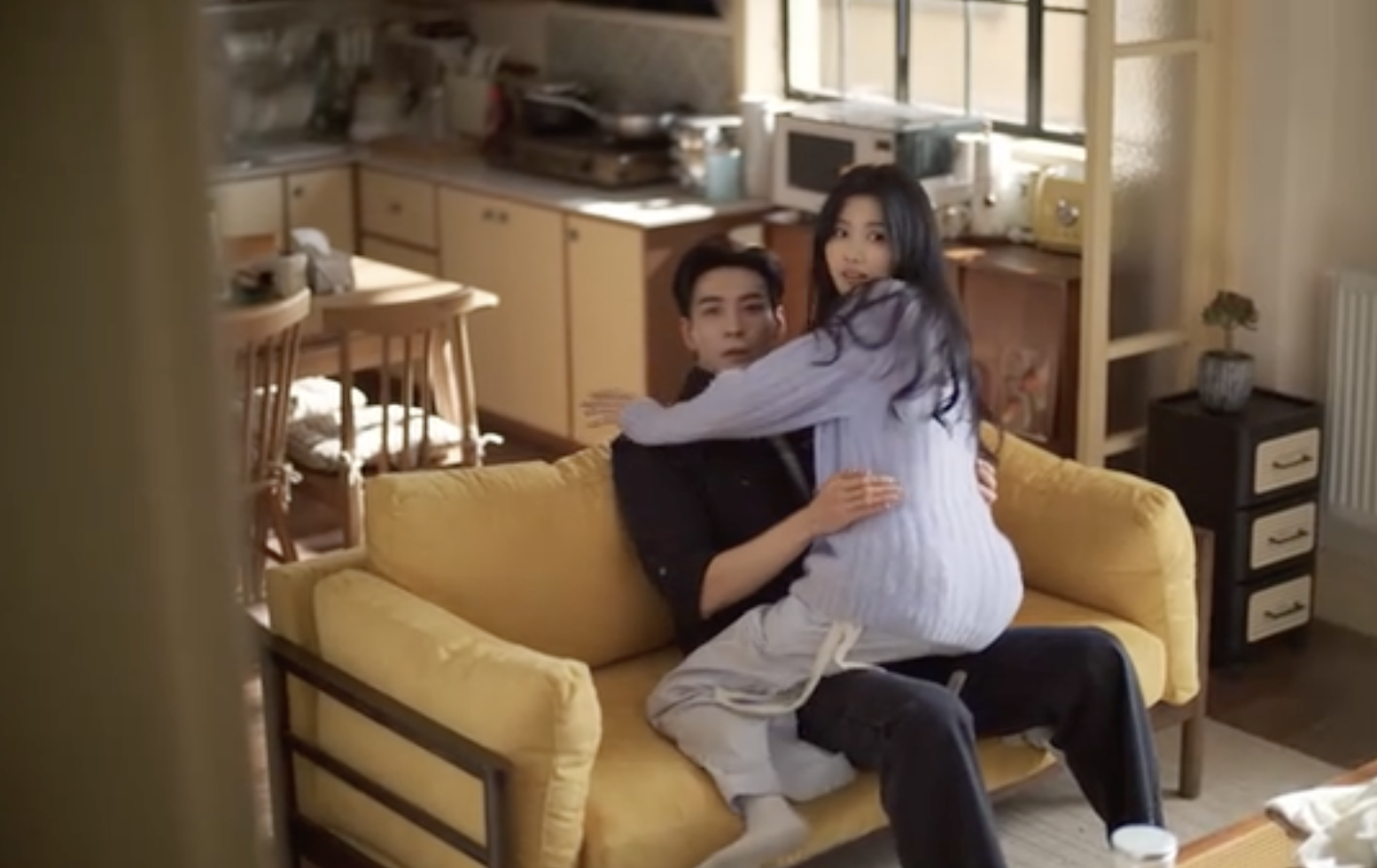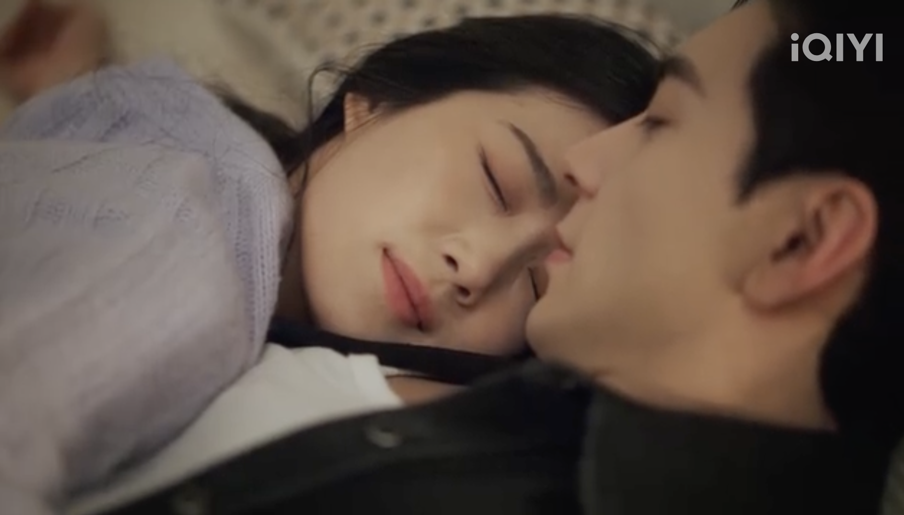 Their timing could not be worse or better. Back at the apartment, the mood is already dangerously intimate as Qin Xiaoyi gently blow-dries Hu Xiu’s hair. One thing leads to another, and soon she’s sitting on his lap, wrapped in his arms, when the door suddenly swings open. Zhao Xiaorou and Gong Huaicong pop their heads in at the exact wrong moment, sending Hu Xiu tumbling straight onto the floor in sheer panic.