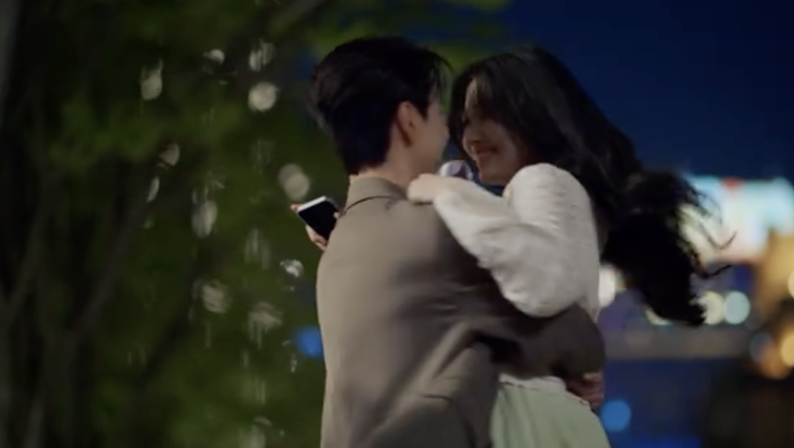 Once they drive away, Xiaoyi pulls over beneath a row of trees to clear the misunderstanding. He gently lifts Hu Xiu onto the car hood and explains that the woman is just an old neighbor who recently got engaged, the gift was nothing more than a polite congratulations. To fully smooth things over, he surprises Hu Xiu with front-row concert tickets, a sweet peace offering that finally melts her lingering doubts.