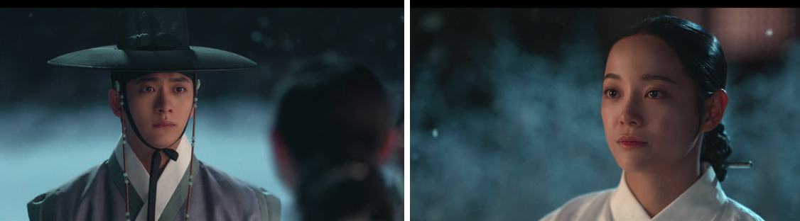 Episode 12 picks up right where our hearts were still racing, Yi Kang and Dal-i finally reunited, with him now knowing she is the crown princess Yeon-wol. That night, they talk quietly about her past, and she asks him to treat her the same way he always treated Dal-i. When she teasingly asks who he loved more, Dal-i or Yeon-wol, he very wisely dodges the question. Some things are better left unsaid, at least for now.