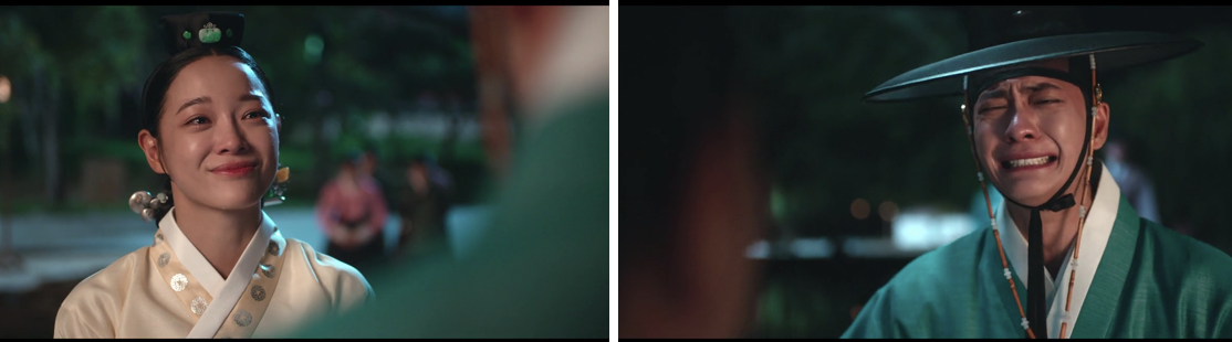 Yi Kang overhears the king promising Hong-nan that he will protect the crown princess as fiercely as his own son. In that moment, everything clicks. Dal-i is Yeon-wol. Suddenly, her recent affection, her urgency, her tears all make sense. Yi Kang runs to her, completely undone. When he asks again what happens when someone catches a falling petal, Dal-i replies through tears that she must have caught two because she married her first love twice.