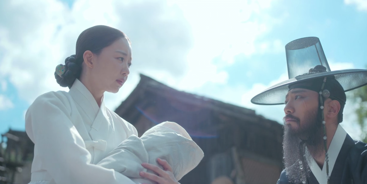 On the run, Yi Kang and Dal-i take refuge with an old man Dal-i once saved. There, she finally pieces together her memory from Gamaksan Mountain: a grieving woman in mourning clothes, the nameless ones intervening, and a detail that gives everything away, the woman’s clean feet. The nameless ones have a base there. She also remembers her brother investigating the incident and giving her a book to pass to the king if anything happened to him.