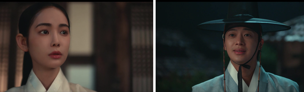 Dal-i, overwhelmed by her memories and emotions, realizes she just needs to be with Yi Kang. She finds him and simply says she wants them to stay together. We later learn she asked the king not to reveal her true identity to Yi Kang yet, hoping to protect him just a little longer. The king quietly sends guards to protect her family, but this only sharpens Han-chul’s suspicions. With Dal-i’s neighbors confirming she appeared five years ago, he begins to suspect she really is the crown princess and orders his men to go after her family.