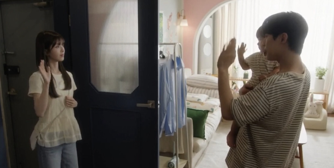 Interview day arrives, and of course nothing goes smoothly. Se-yeon, who was supposed to watch Woo-joo, is suddenly sent to Busan for work. Hyun-jin scrambles for a sitter and, in desperation, texts Tae-hyung that she’s giving up the child. It’s a dramatic message, but really it’s the cry of a woman overwhelmed. Tae-hyung rushes over, and after some pleading and stubborn back-and-forth, he agrees to watch Woo-joo for a few hours.