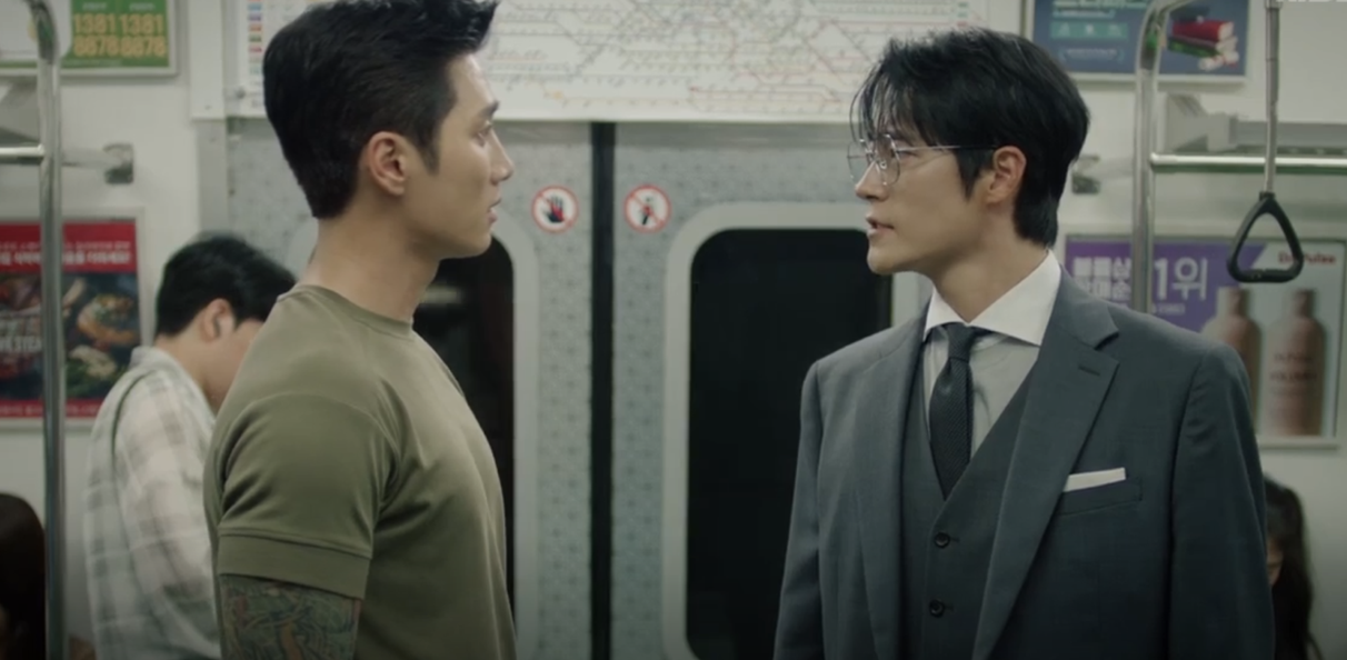 The episode opens inside the metro train, picking up from the tense moment where Bom nearly loses her balance. Jae-gyu catches her just in time, and in that instant, something clicks for both of them. They recognize each other from childhood. Nothing is said out loud, but the shared silence speaks volumes. Before either can process it, Bom spots the man she saw with Se-jin and urges Jae-gyu to follow him.