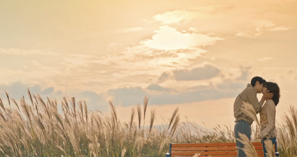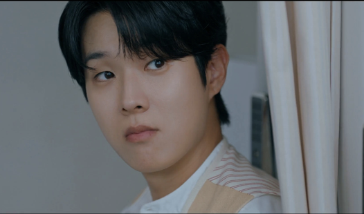 The romantic tension heats up later when Woo-joo picks Me-ri up from work in his new car. He shares his old diaries with her, revealing his mysterious first crush, Miso, who turns out to be someone he owes gratitude to, not a past love. Their teasing quickly escalates into a near-kiss, and as a heavy rainstorm hits, Woo-joo takes the chance to stay over at Me-ri’s house, sending her a soothing song to calm her nerves through the night.